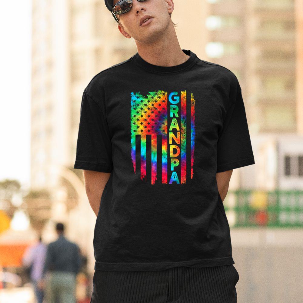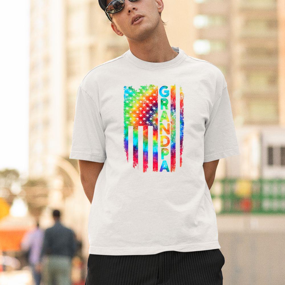 Thebestfathersonsmatchingshirts American Flag US Grandpa Tie Dye Father’s Day 4th Of July Unisex T-shirt