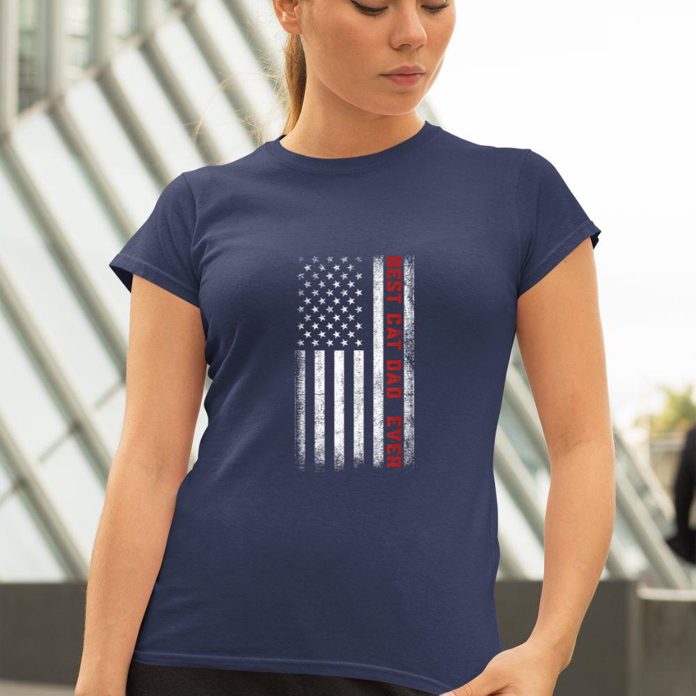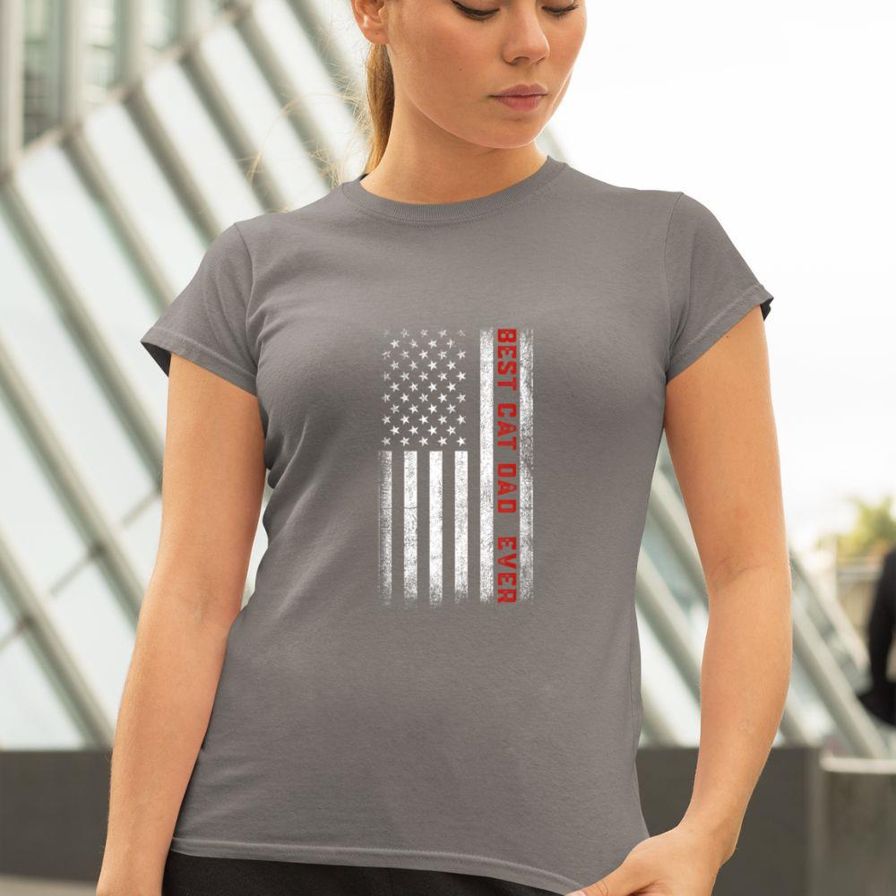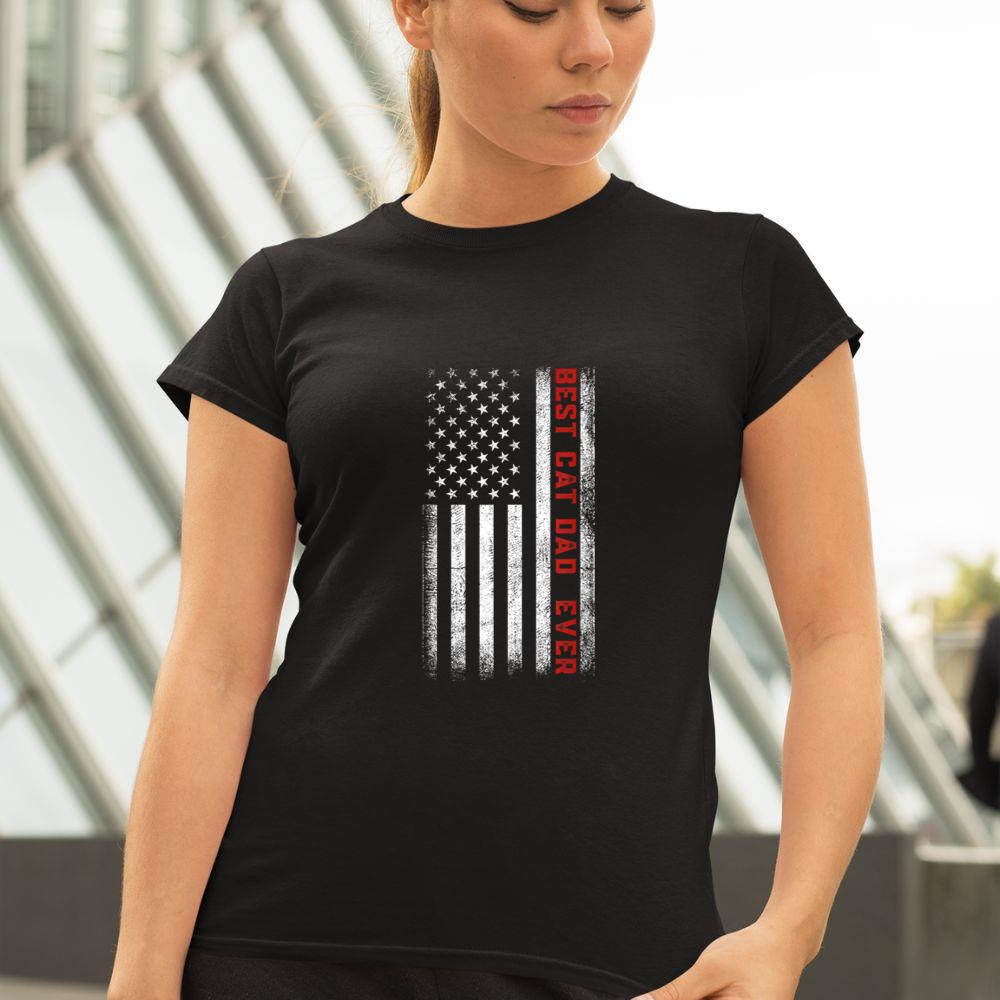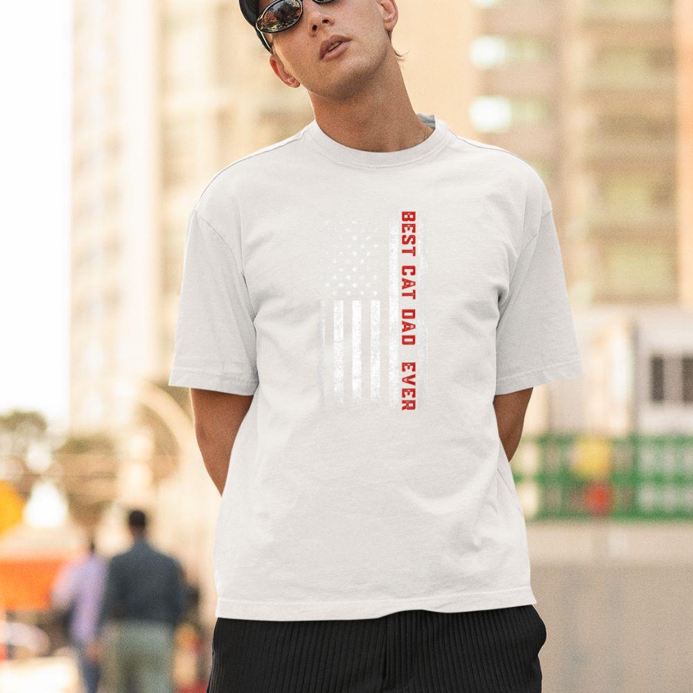 Thebestfathersonsmatchingshirts Best Cat Dad Ever American Flag Cat Dad Father’s Day Unisex T-shirt