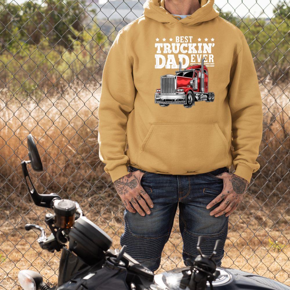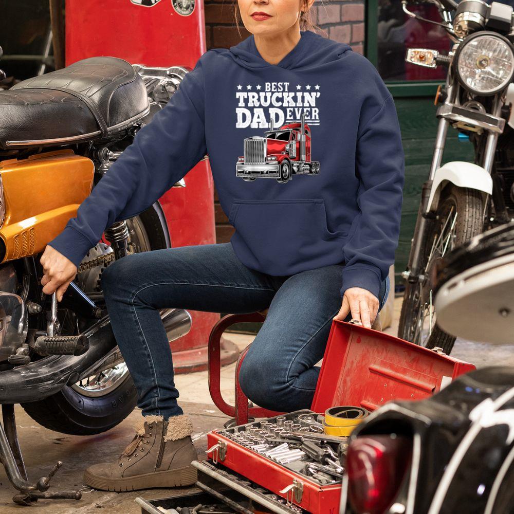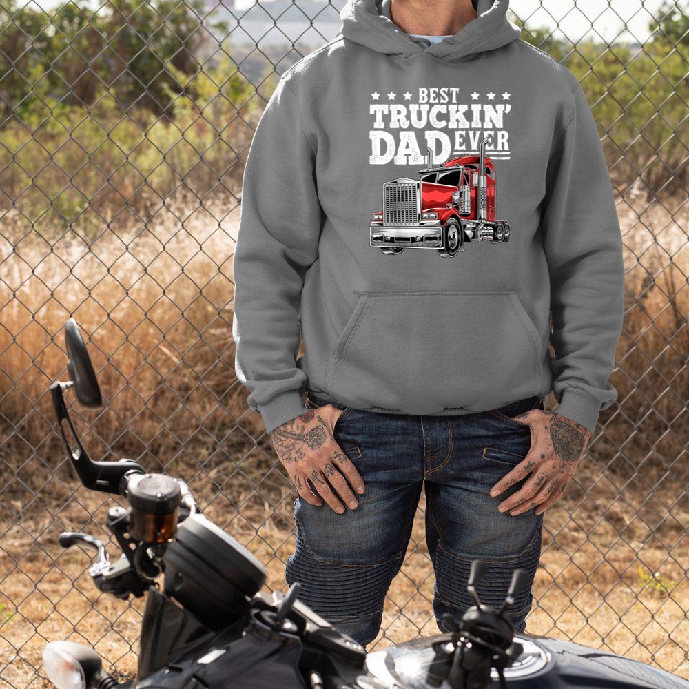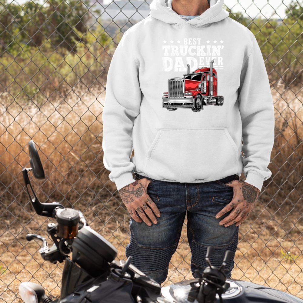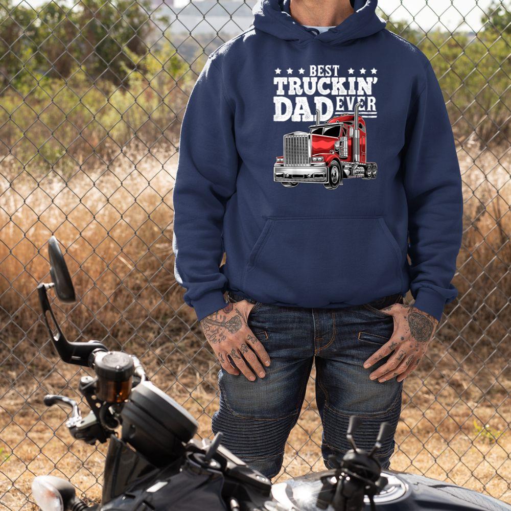 Thebestfathersonsmatchingshirts Best Truckin Dad Ever Big Rig Trucker Father’s Day Gift Men Unisex Hoodie