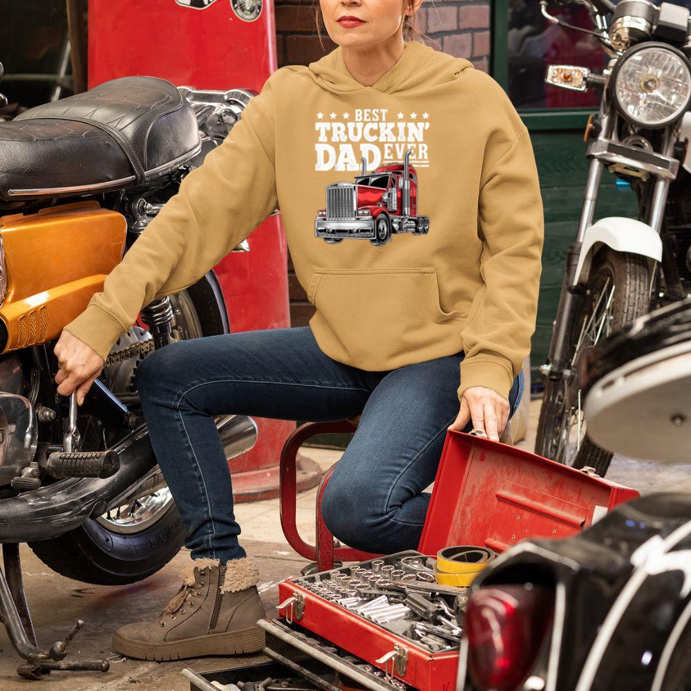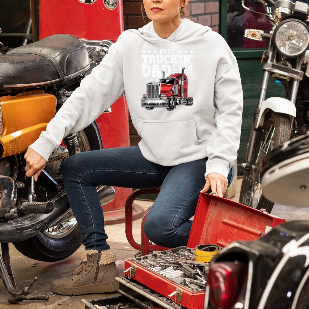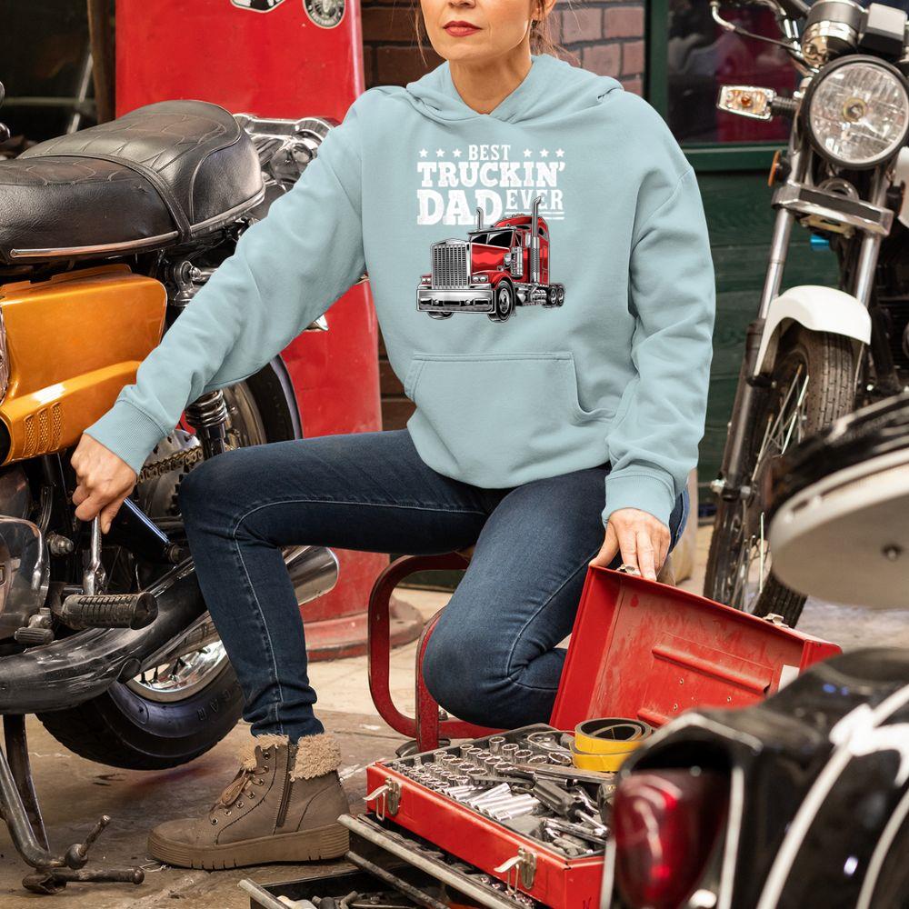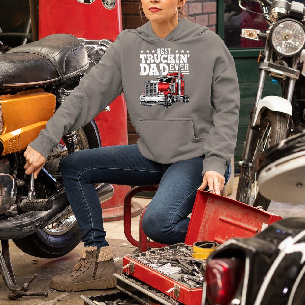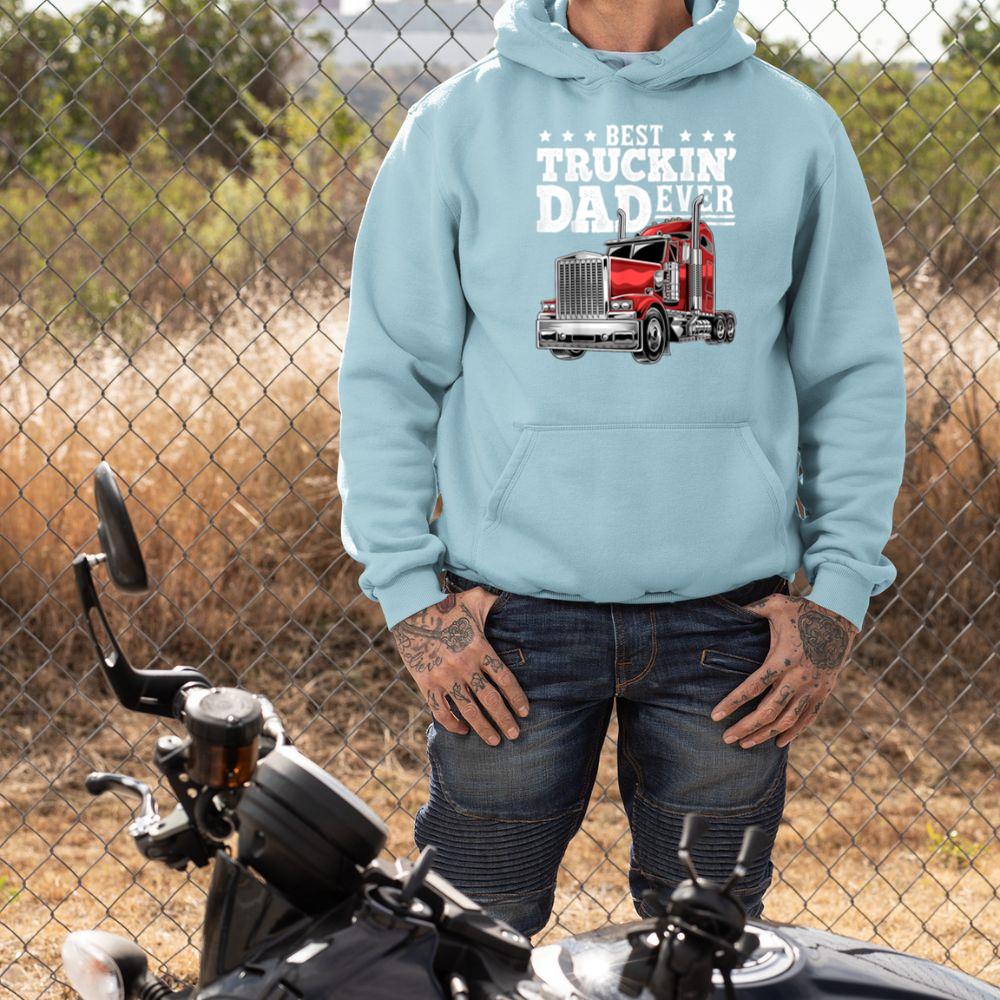 Thebestfathersonsmatchingshirts Best Truckin Dad Ever Big Rig Trucker Father’s Day Gift Men Unisex Hoodie