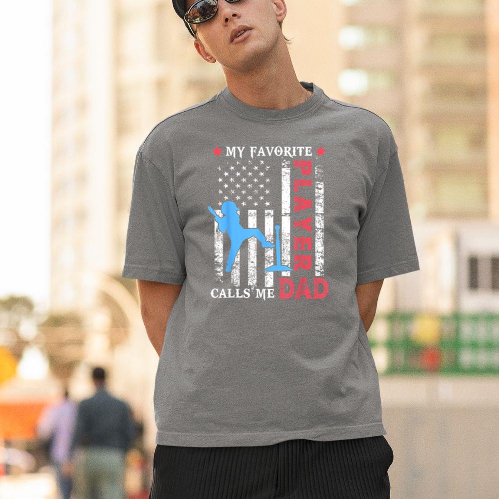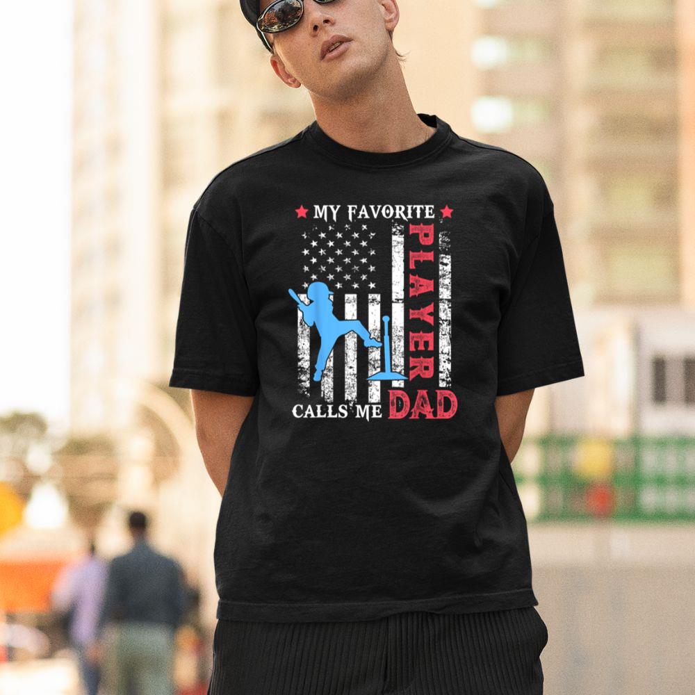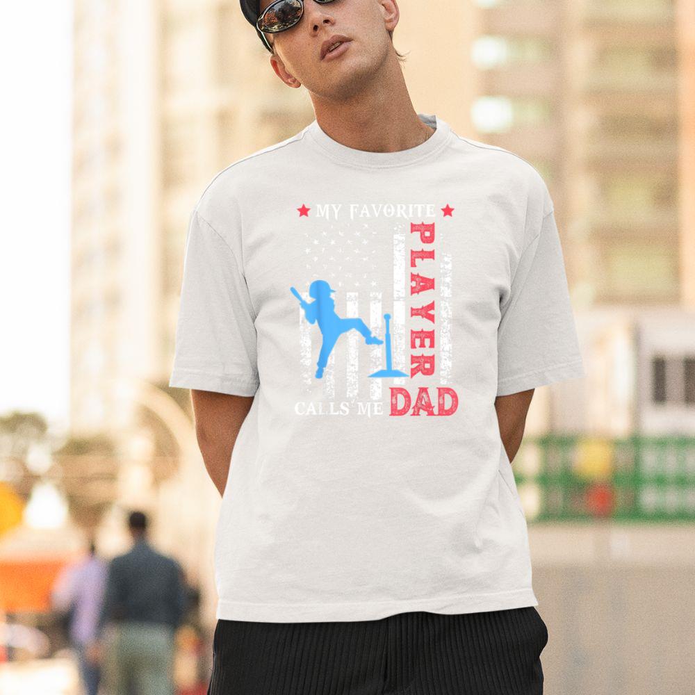 Thebestfathersonsmatchingshirts Favorite Tee Ball Player Calls Me Dad USA Flag Father’s day Unisex T-shirt