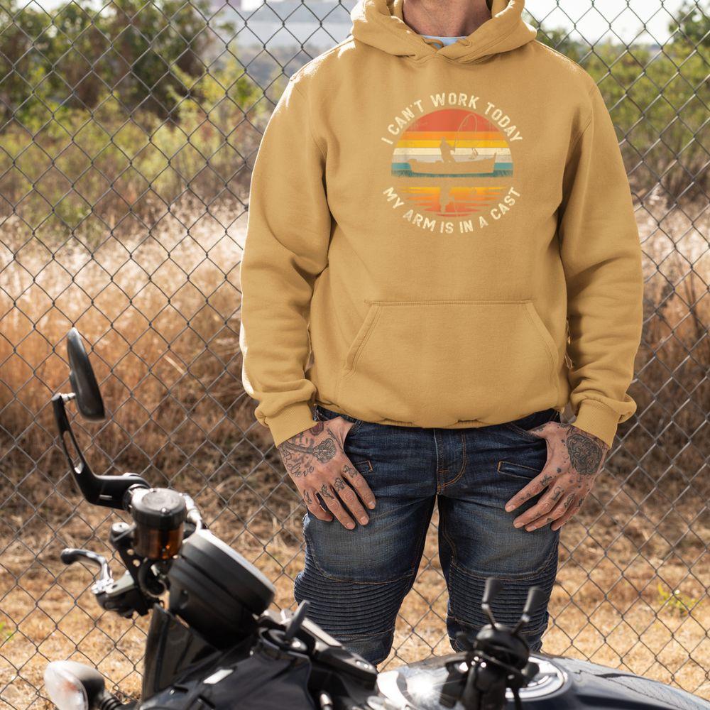 Thebestfathersonsmatchingshirts Fishing Father’s Day I Can’t Work Today My Arm Is In A Cast Unisex Hoodie