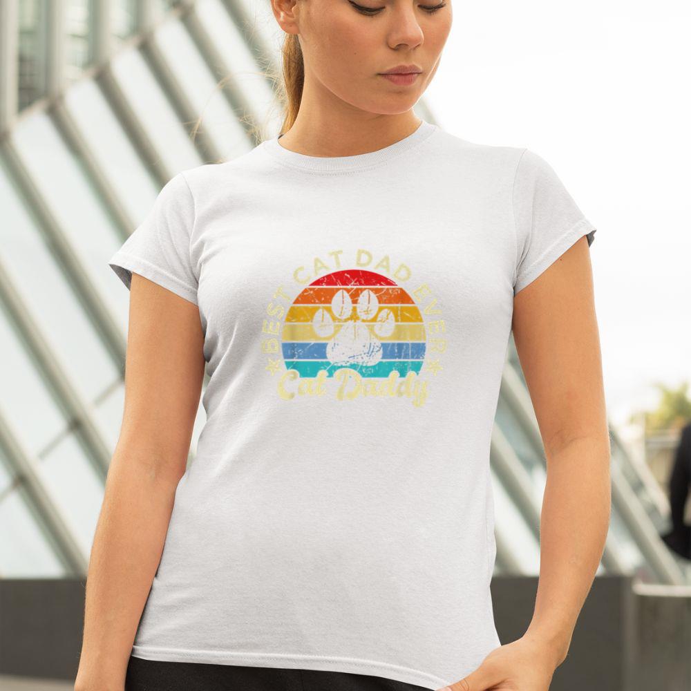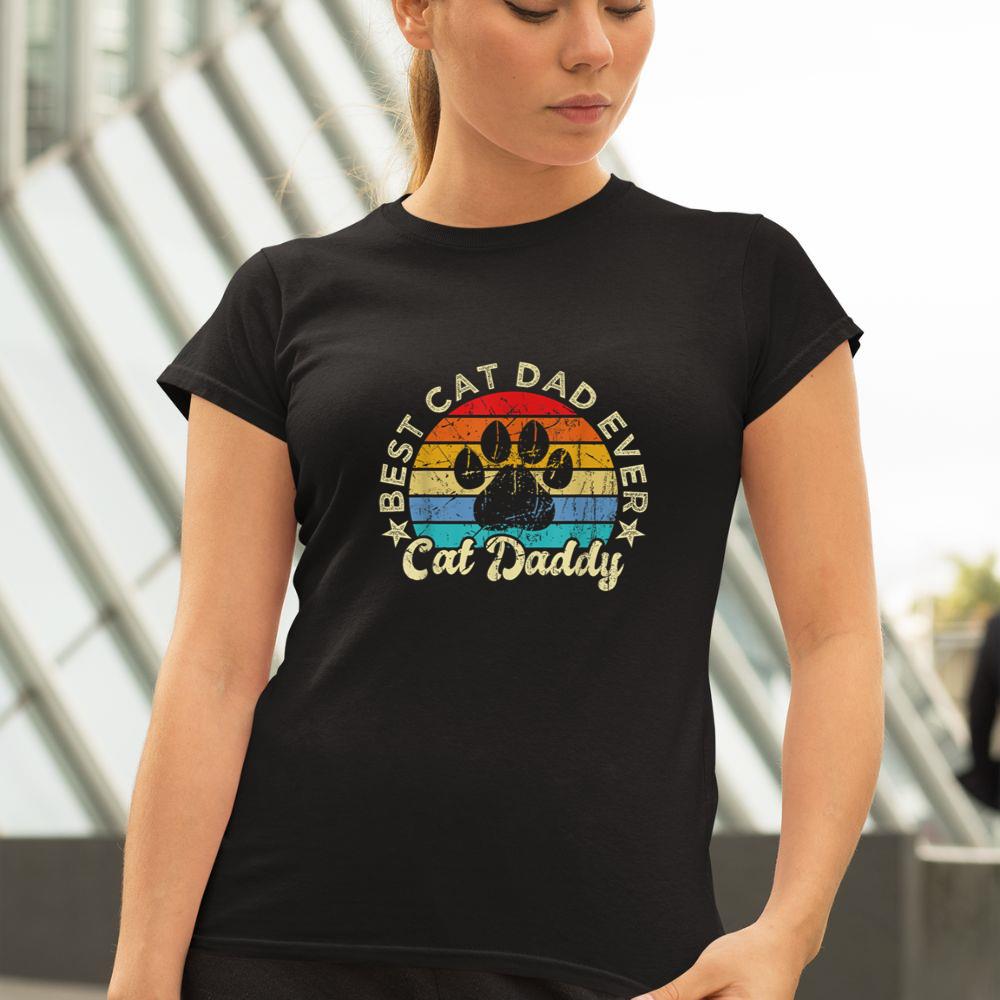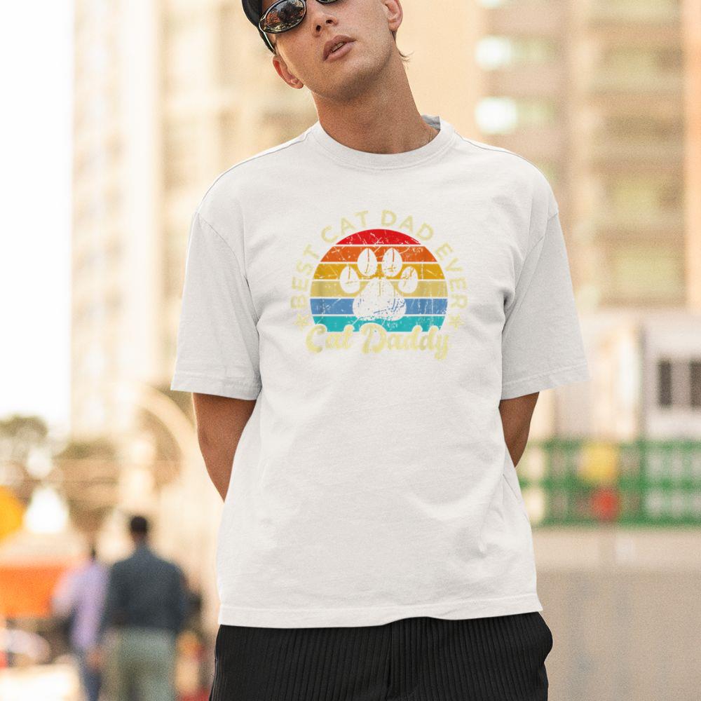 Thebestfathersonsmatchingshirts Funny Cat Daddy Shirt Cat Father Vintage Best Cat Dad Ever Unisex T-shirt