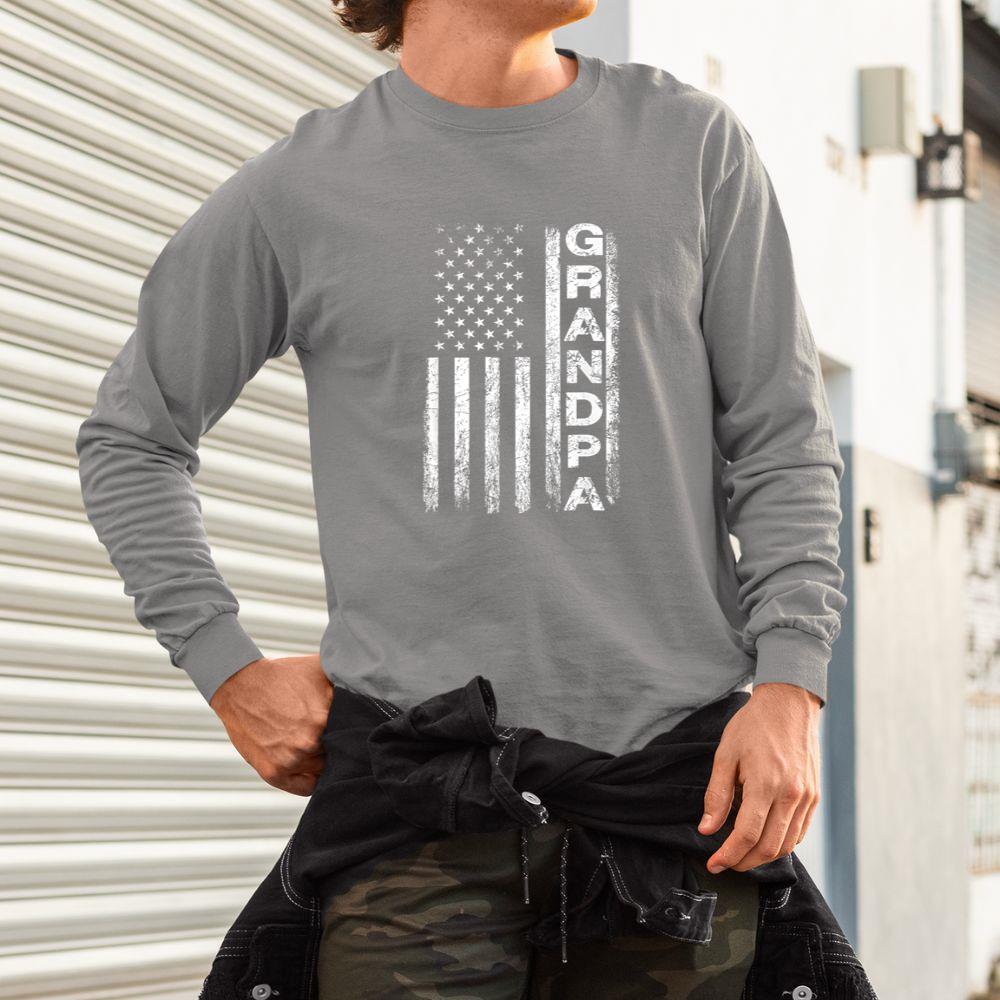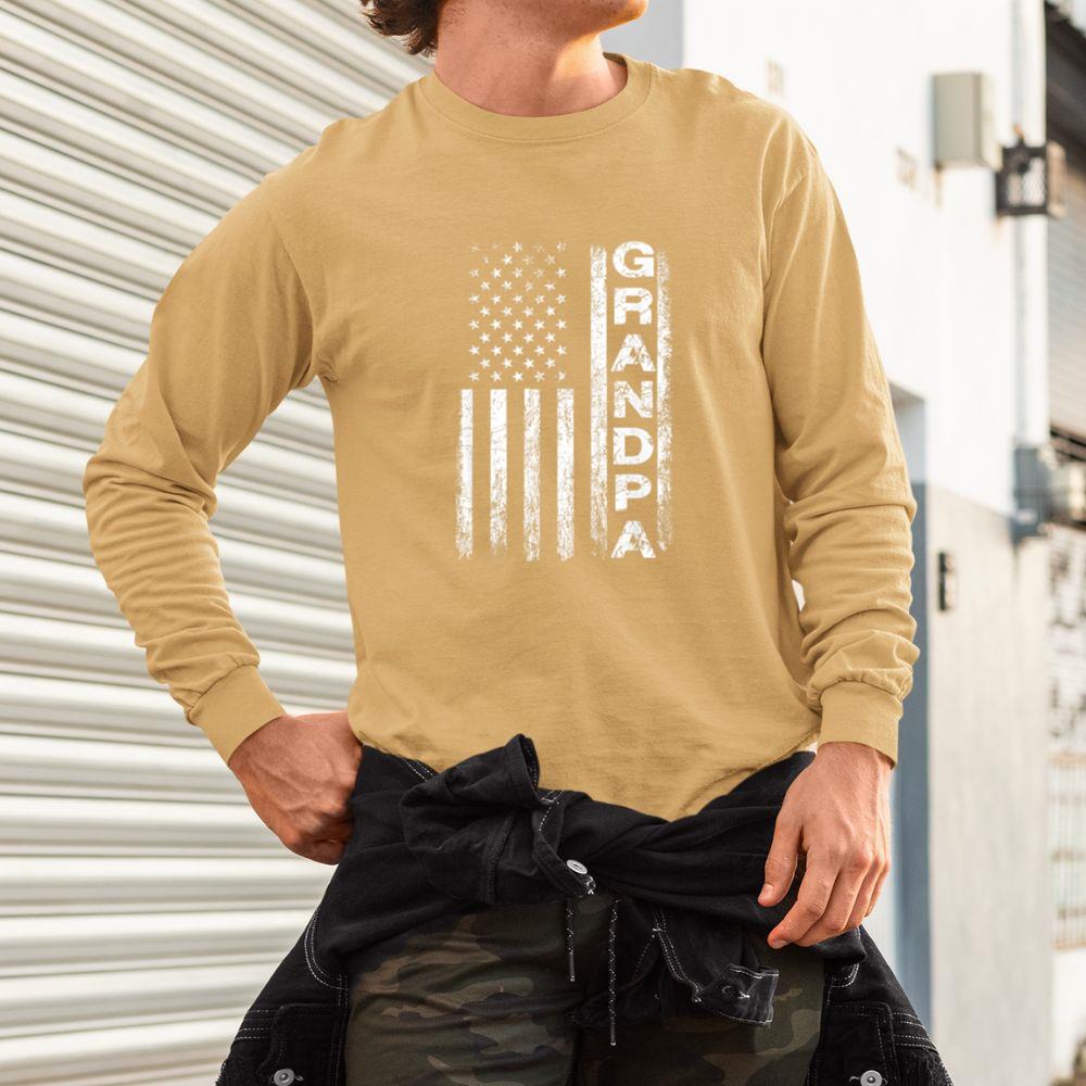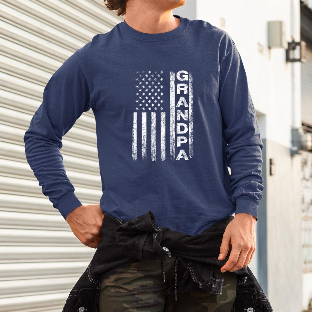 Thebestfathersonsmatchingshirts Grandpa Vintage American Flag Father’s Day 4th of July Papa Unisex Long Sleeve