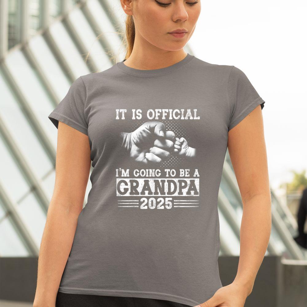 Thebestfathersonsmatchingshirts It Is Official I’m Going To Be A Grandpa 2025 Fathers Day Unisex T-shirt