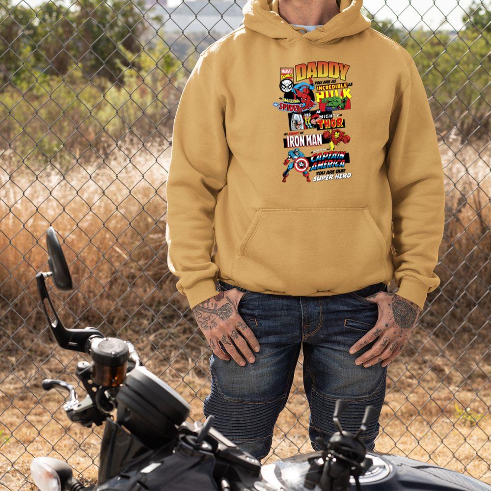 Thebestfathersonsmatchingshirts Marvel Avengers Father’s Day Retro Comic Graphic Short Sleeve Unisex Hoodie