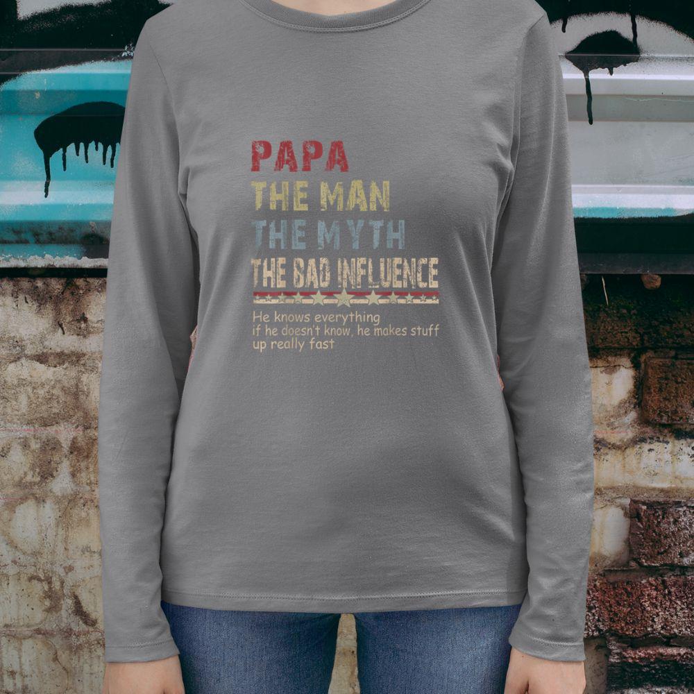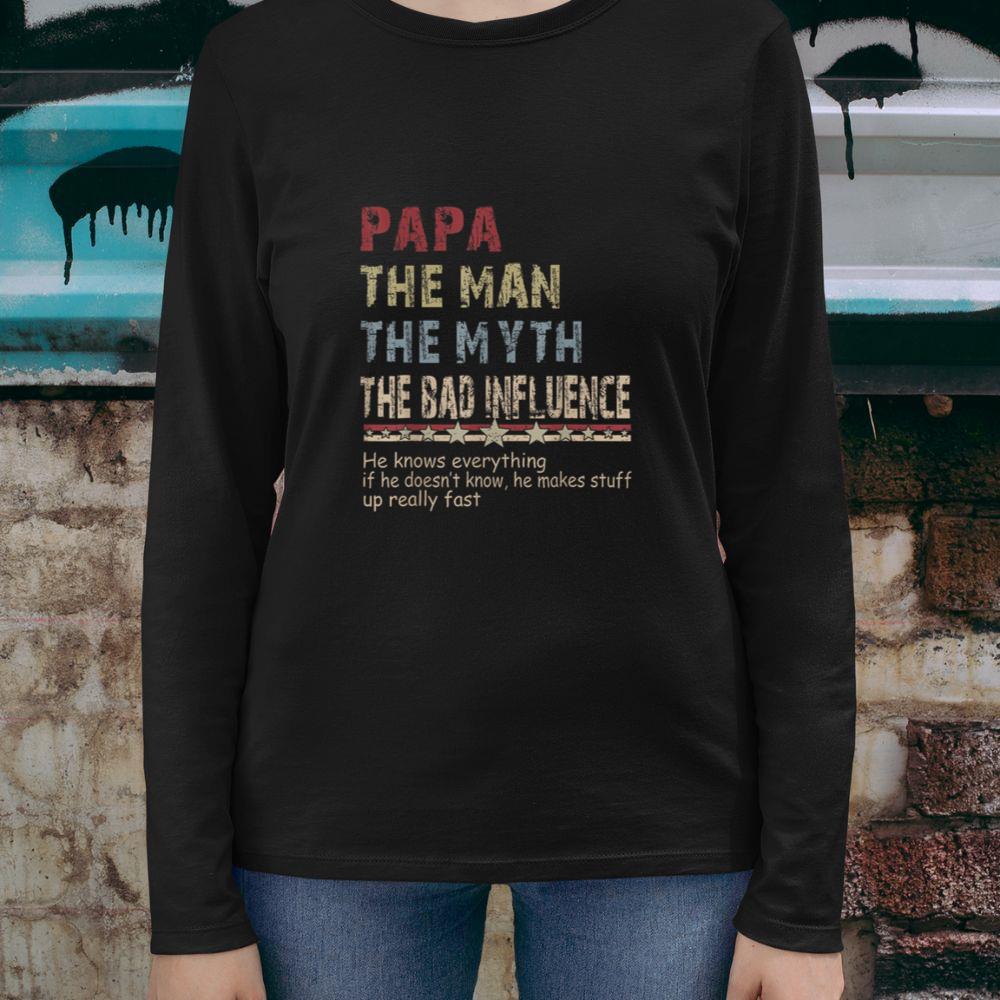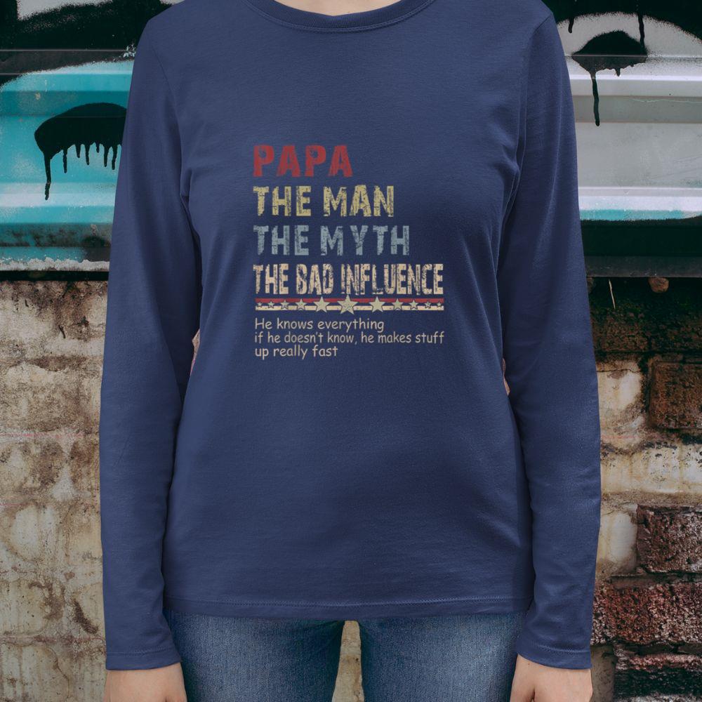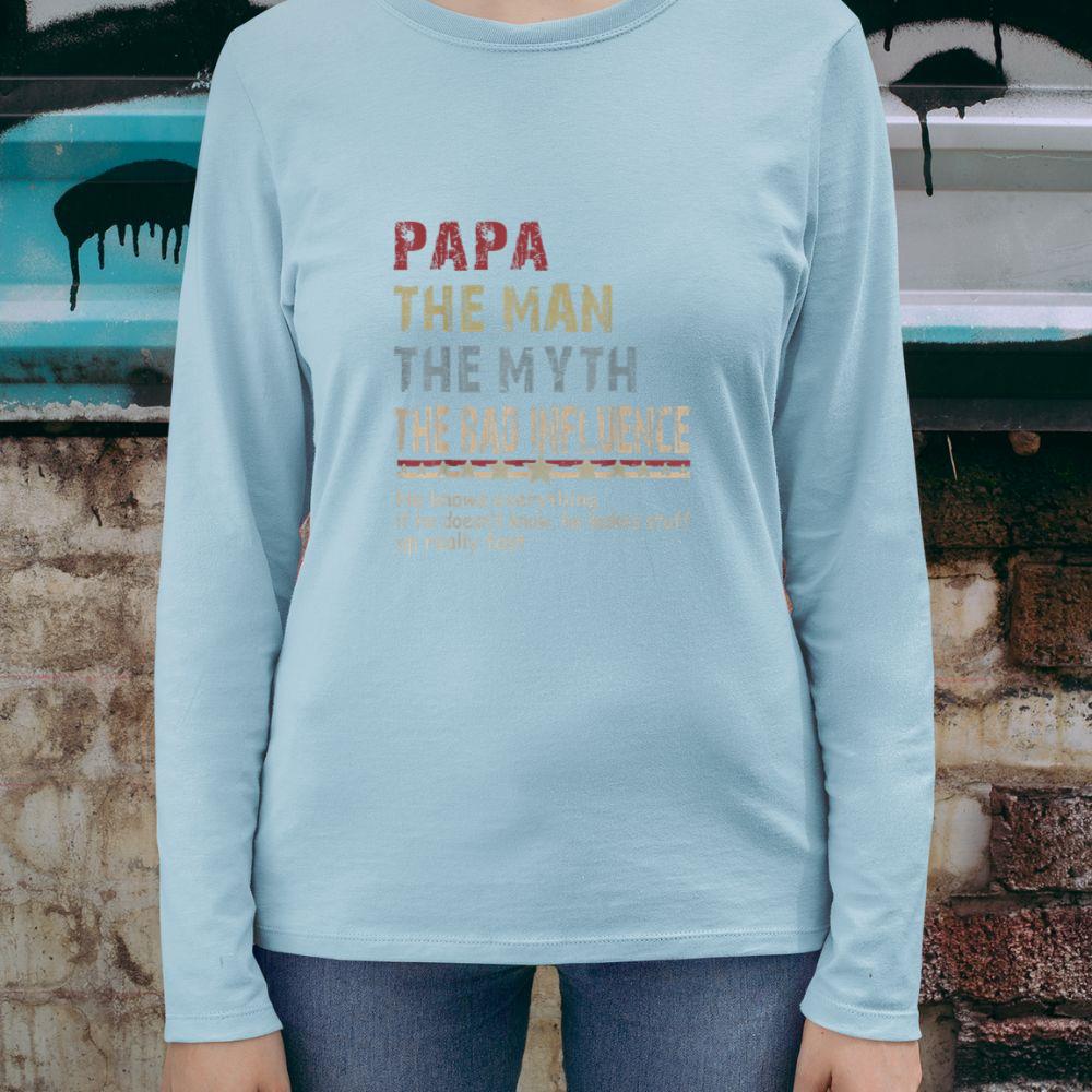 Thebestfathersonsmatchingshirts Papa The Man The Myth The Bad Influence Shirt Fathers Day Unisex Long Sleeve