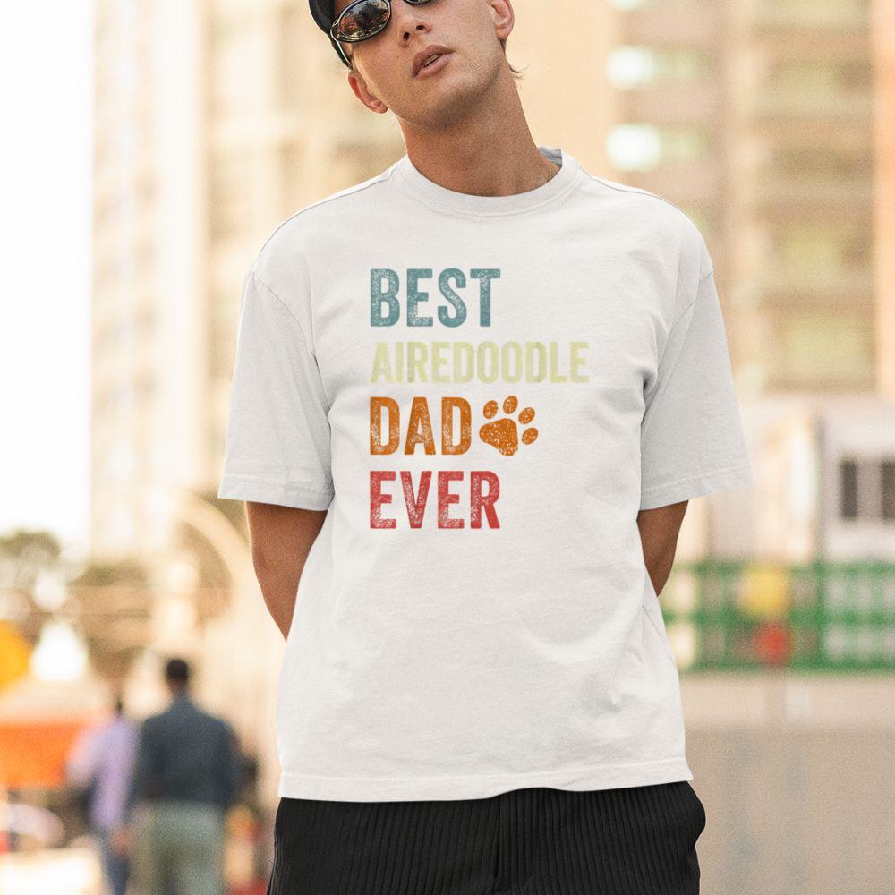 Thebestfathersonsmatchingshirts Retro Best Airedoodle Dad Ever Airedoodle Papa Father’s Day Unisex T-shirt