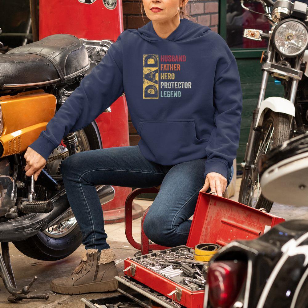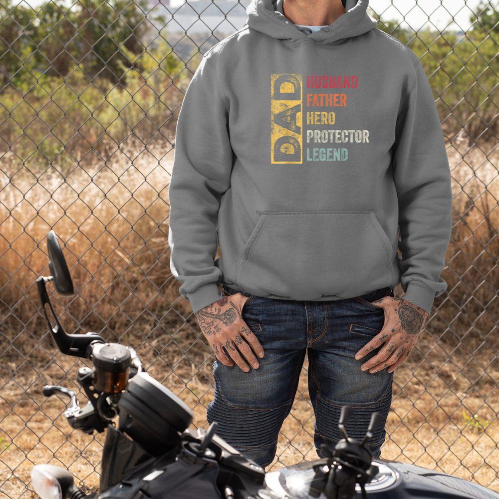 Thebestfathersonsmatchingshirts Retro Husband Father Hero Protector Legend Father Day Dad Unisex Hoodie
