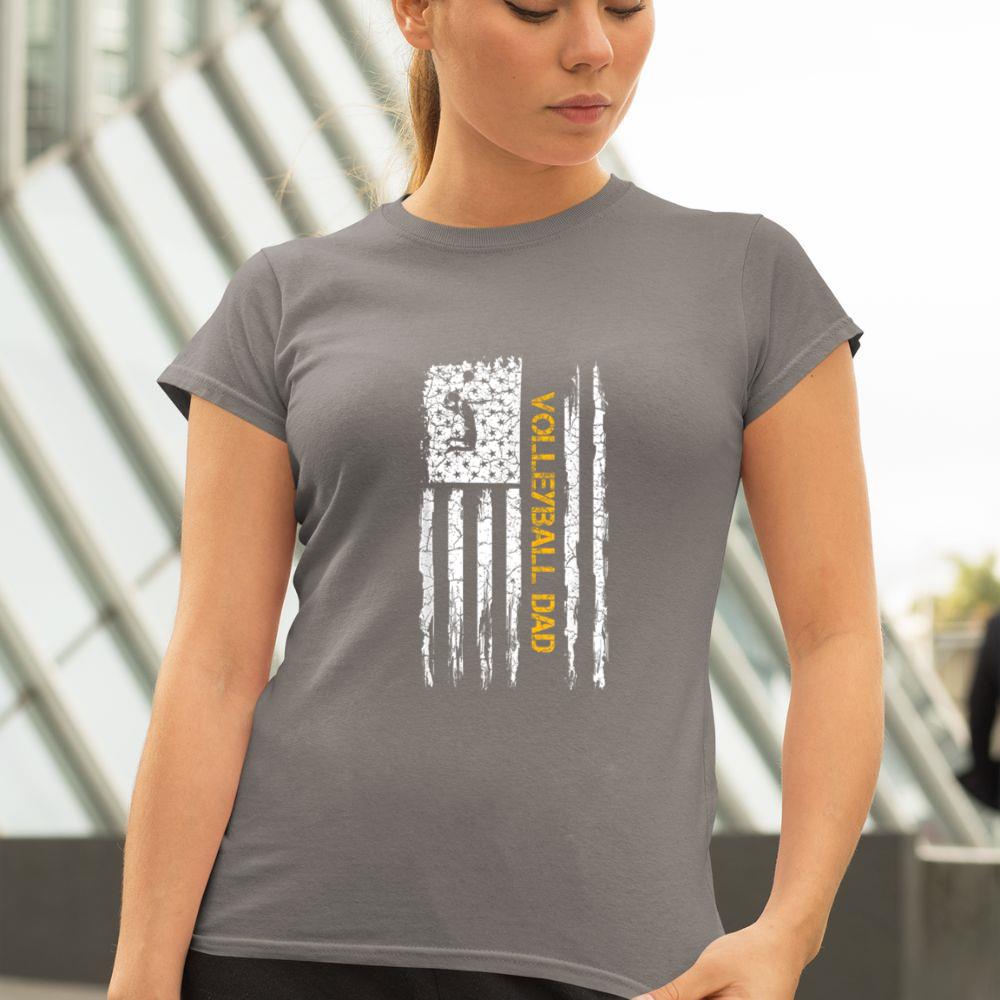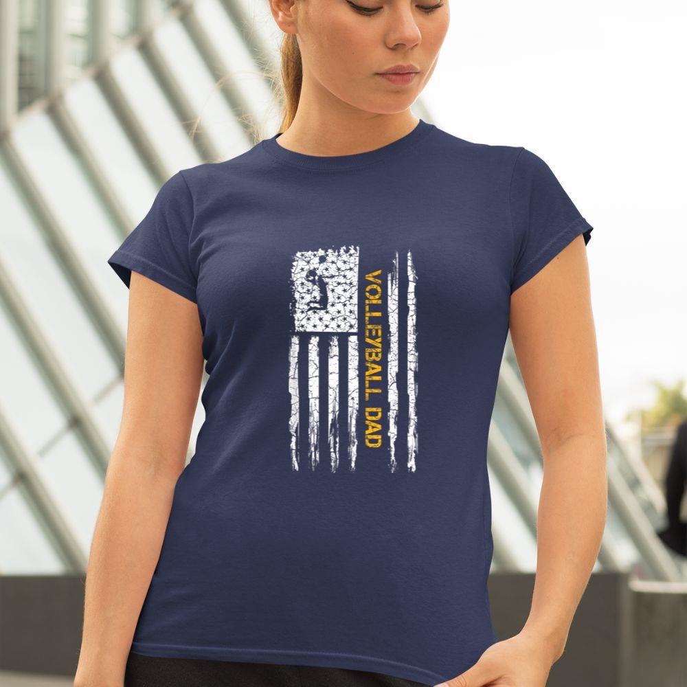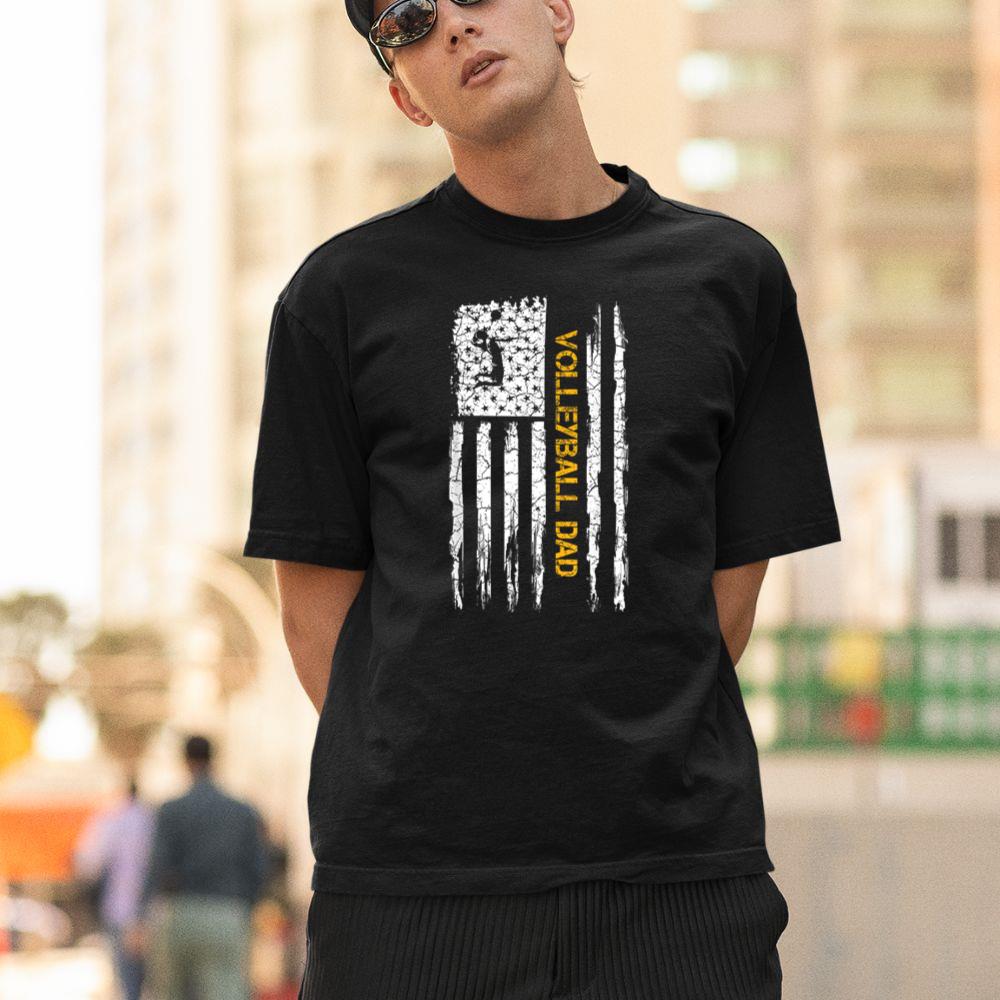 Thebestfathersonsmatchingshirts Vintage USA American Flag Proud Volleyball Dad Silhouette Unisex T-shirt