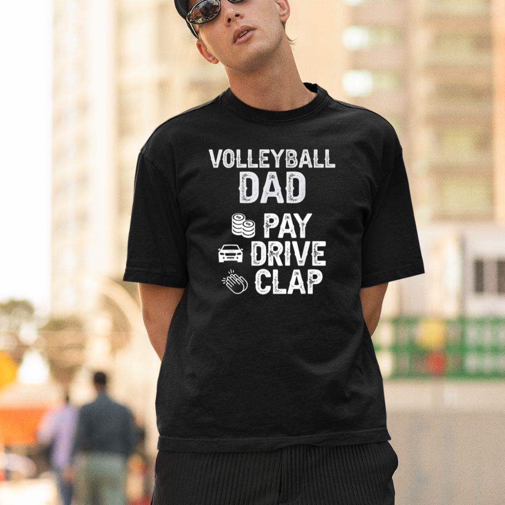 Thebestfathersonsmatchingshirts Volleyball Dad Pay Drive Clap Dad Of A Volleyball Player Dad Unisex T-shirt