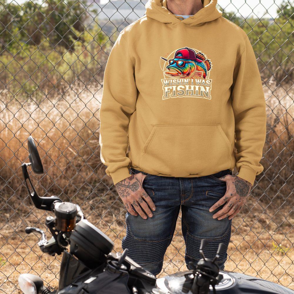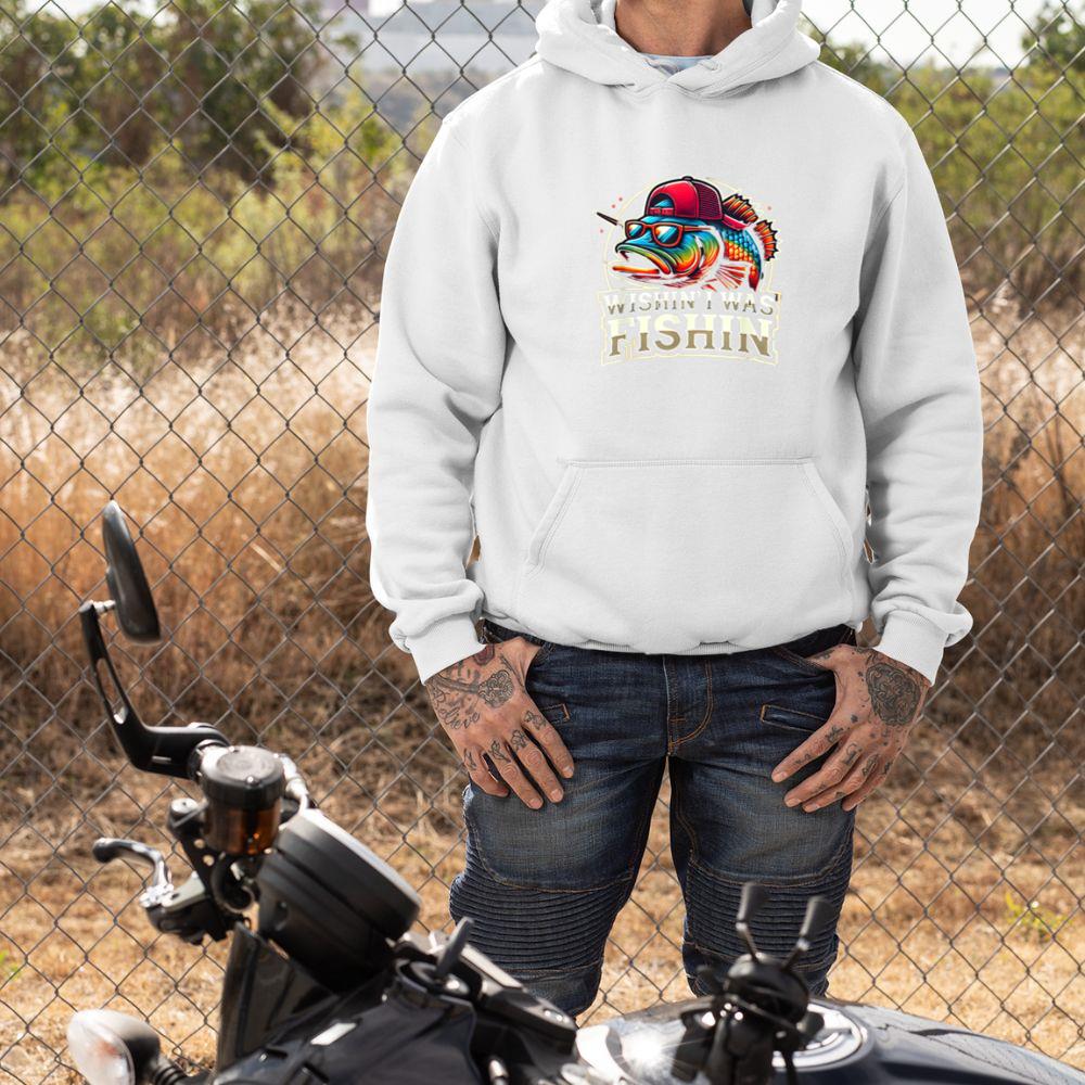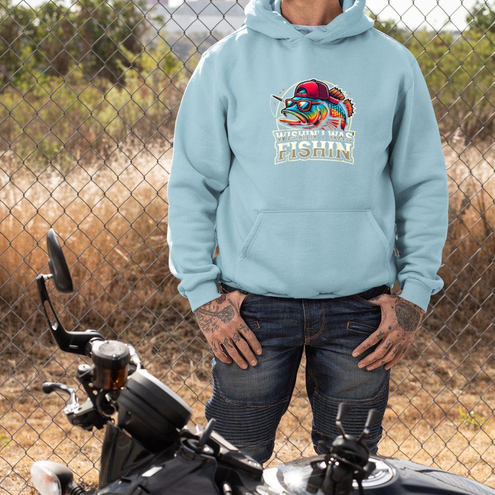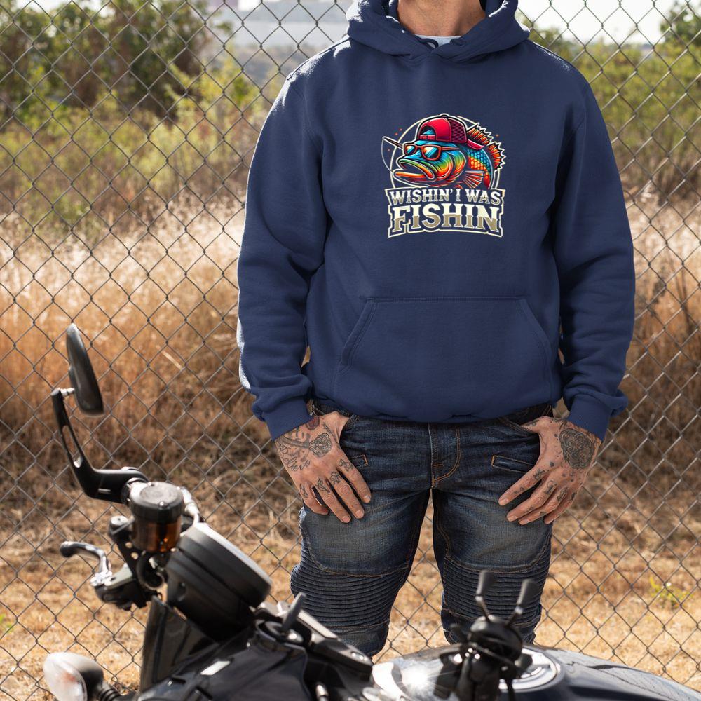 Thebestfathersonsmatchingshirts Wishin’ I Was Fishin’ Funny Fishing Fisherman Father’s Day Unisex Hoodie