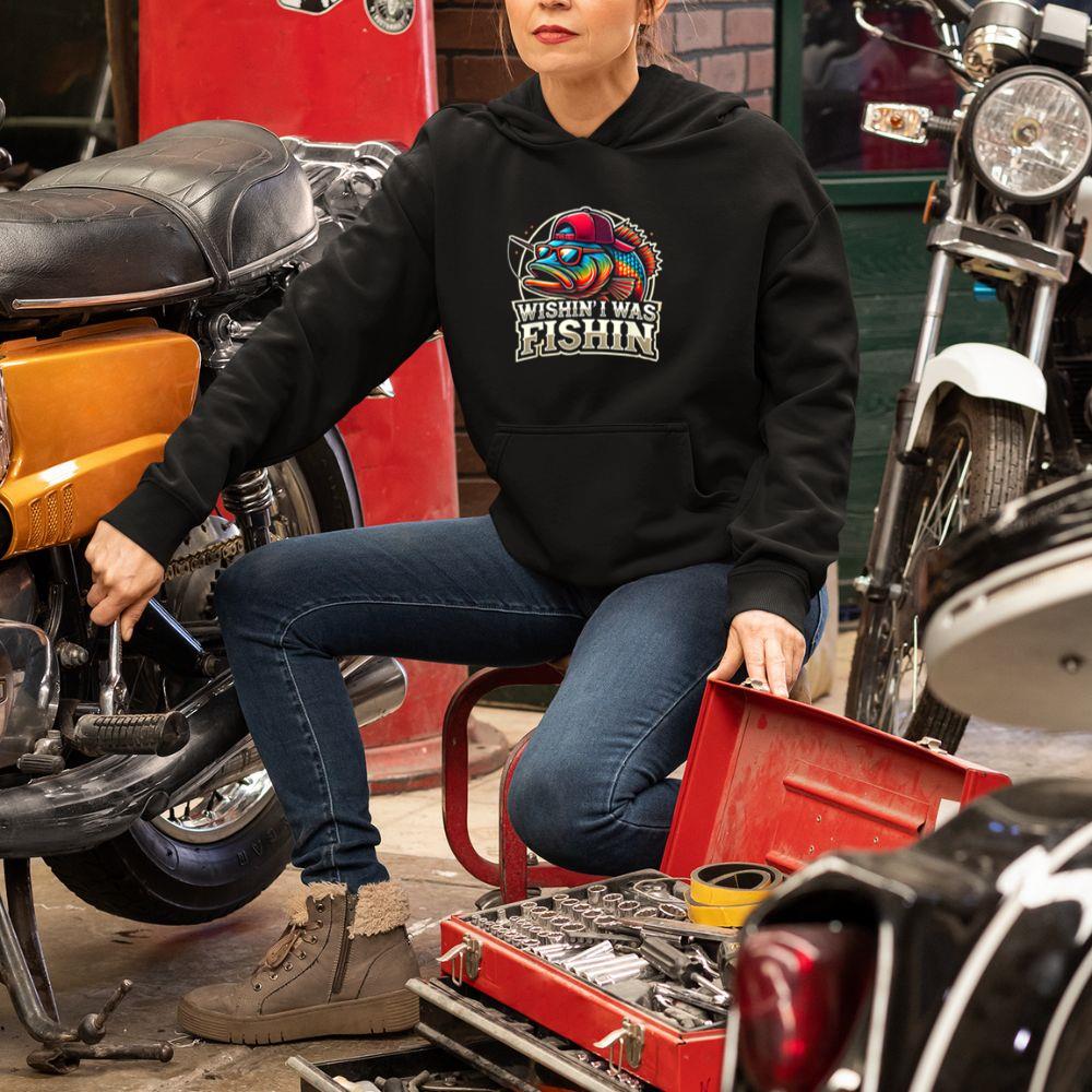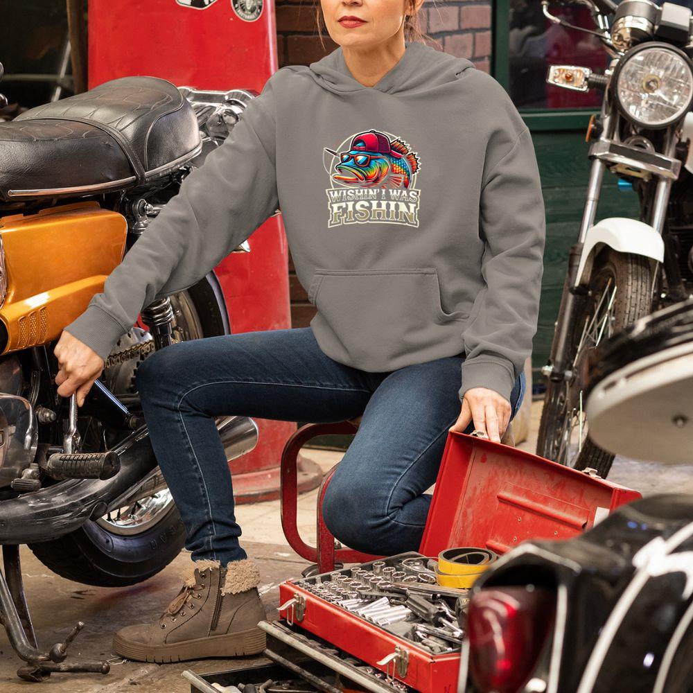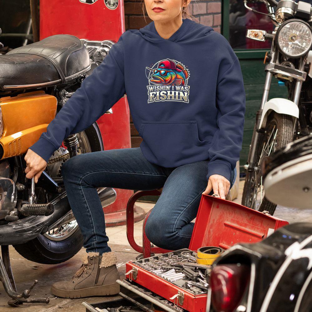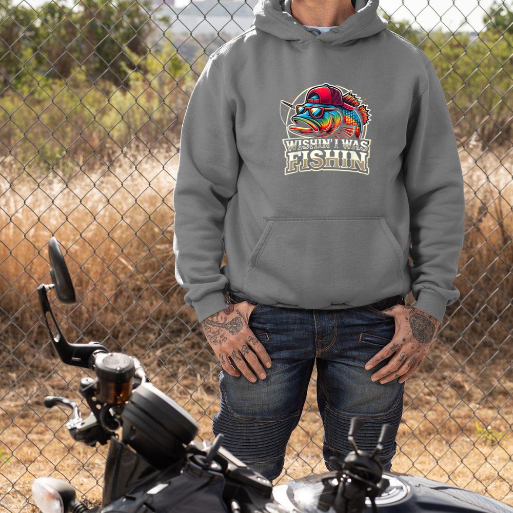 Thebestfathersonsmatchingshirts Wishin’ I Was Fishin’ Funny Fishing Fisherman Father’s Day Unisex Hoodie