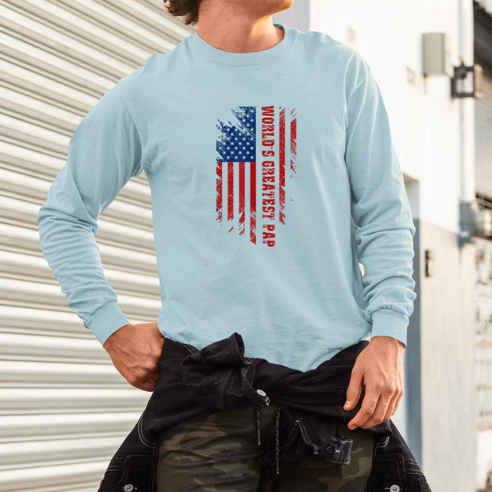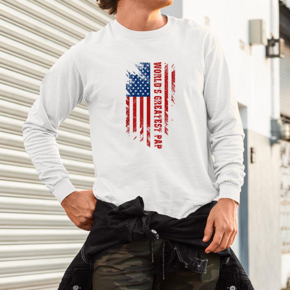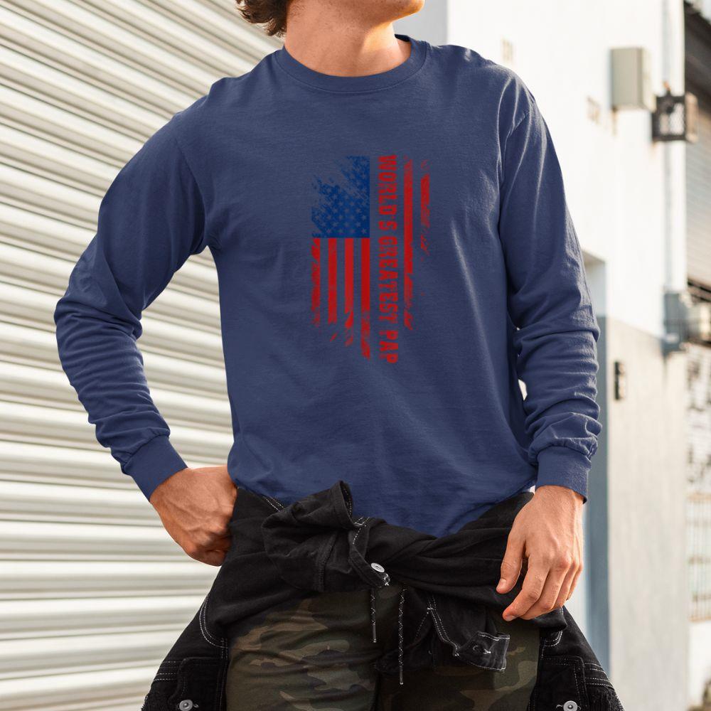Thebestfathersonsmatchingshirts World’s Greatest Pap American Flag Men Father’s Day Gift Unisex Long Sleeve
