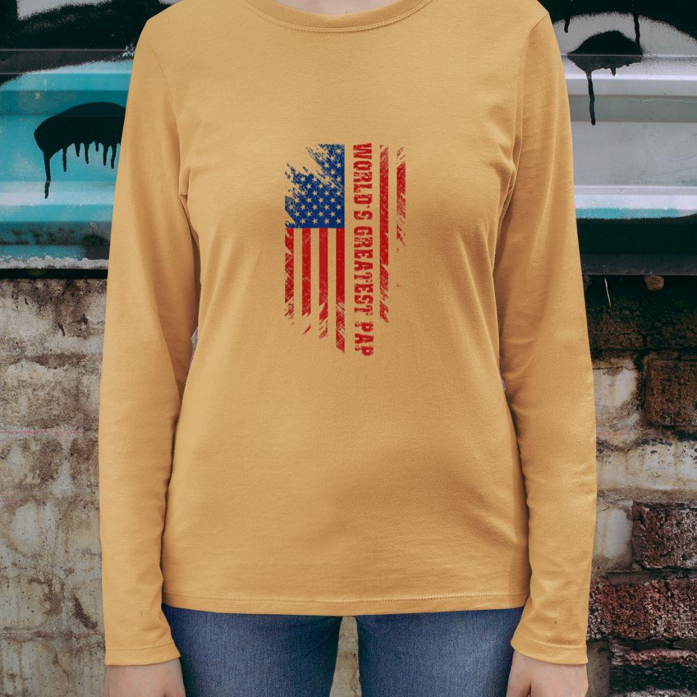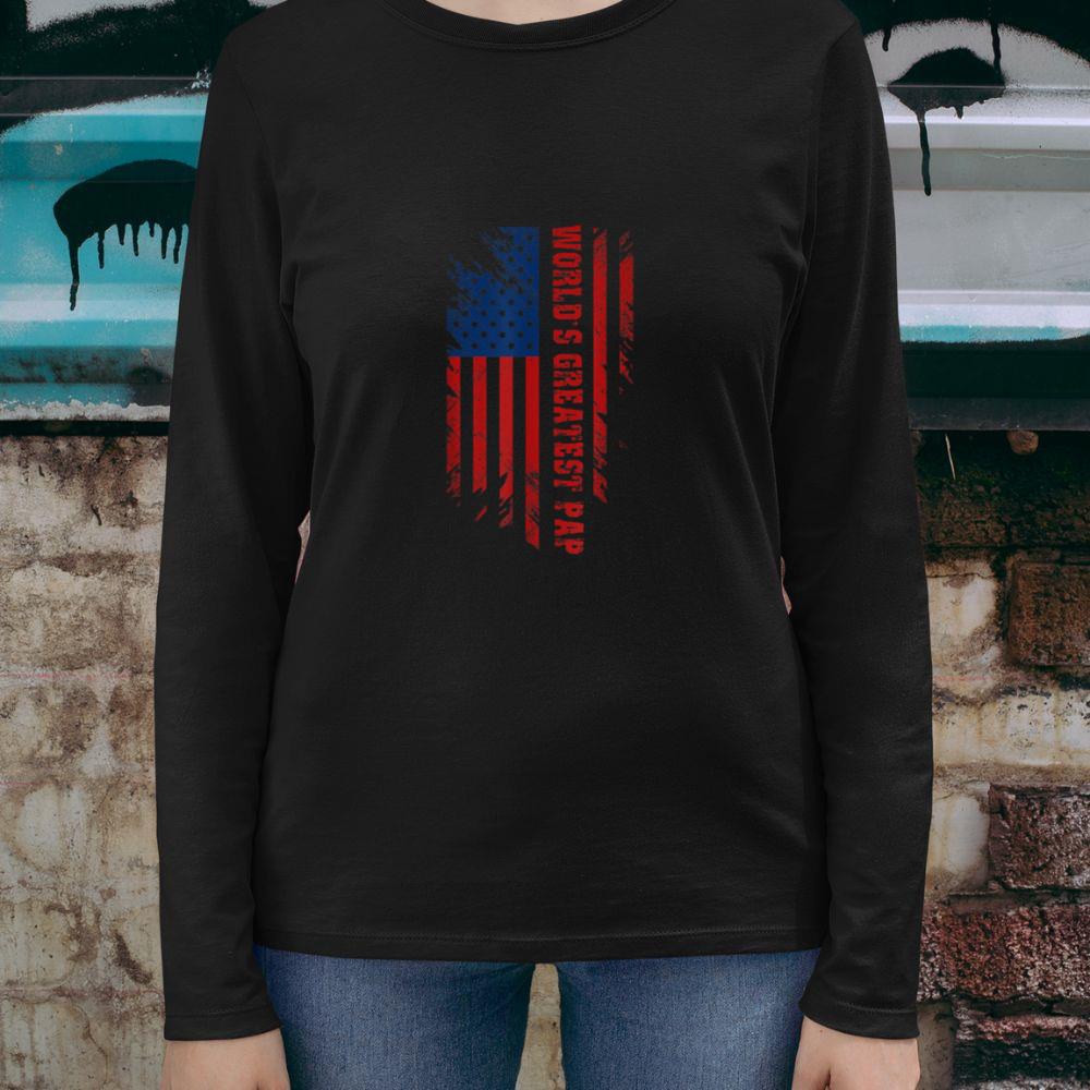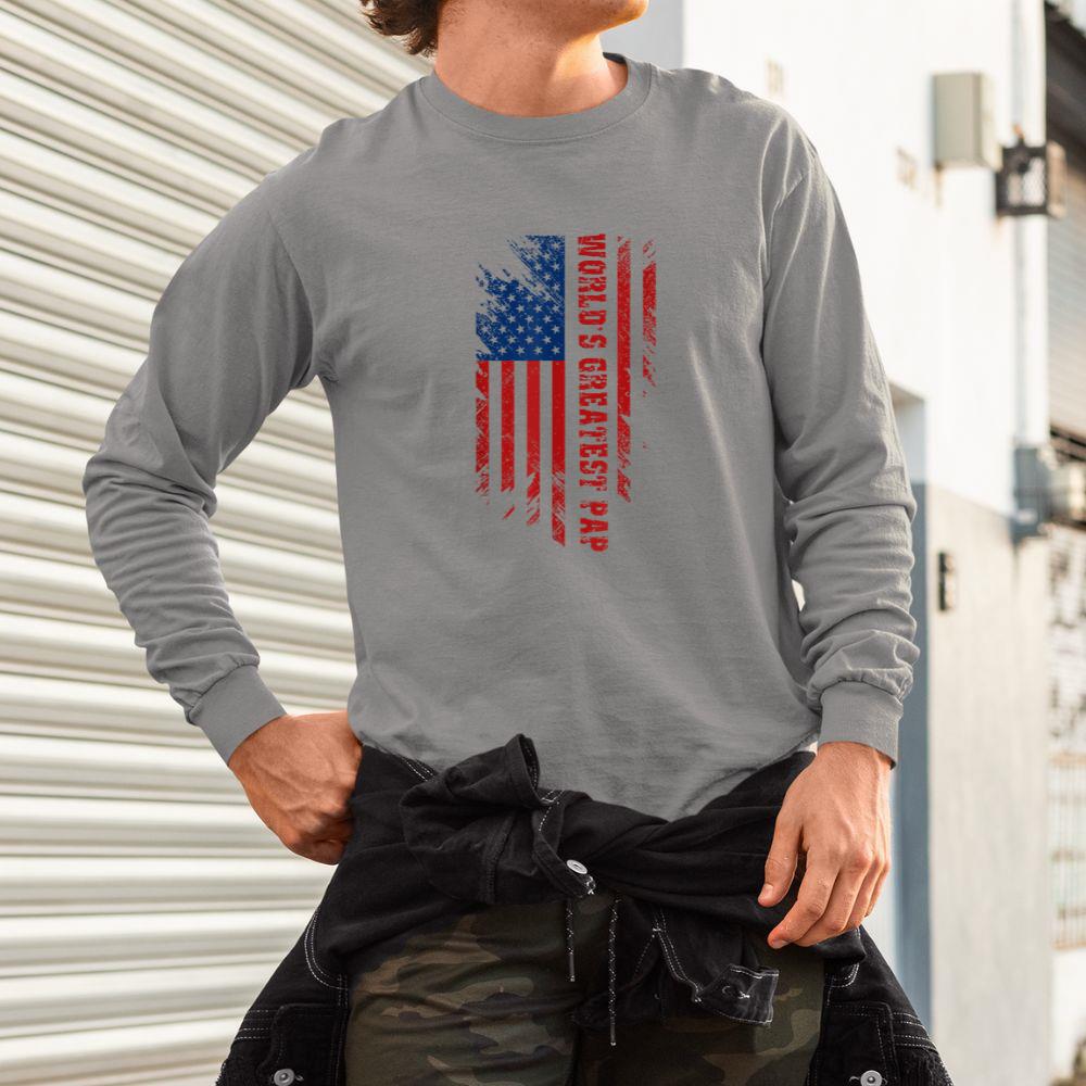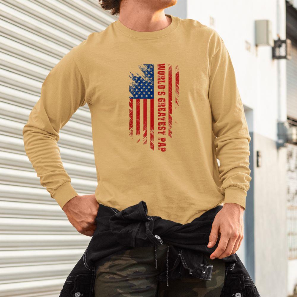 Thebestfathersonsmatchingshirts World’s Greatest Pap American Flag Men Father’s Day Gift Unisex Long Sleeve